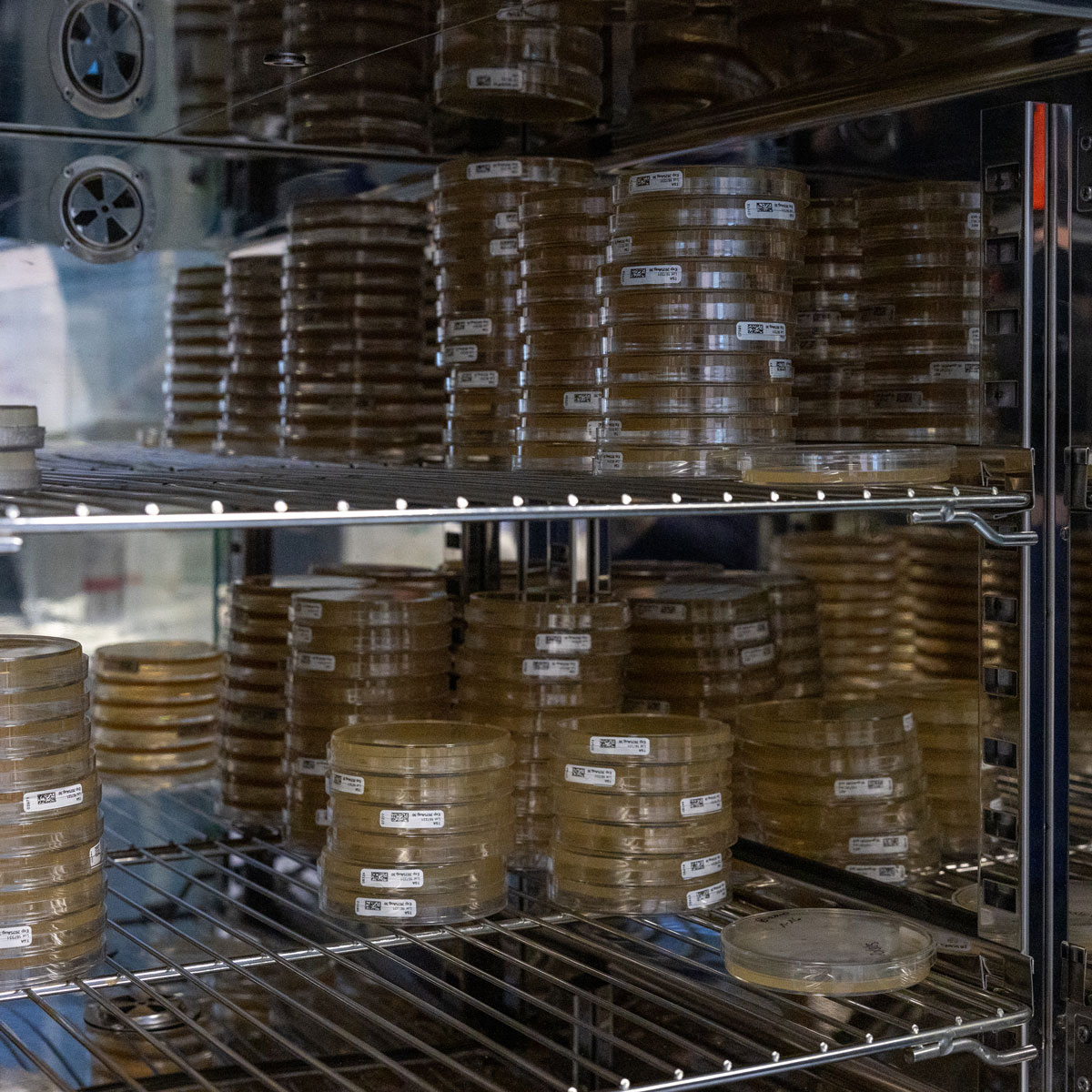 Il laboratorio microbiologico è dotato di cappa a flusso laminare e incubatrici, grazie alle quali è possibile controllare la carica batterica di ogni lotto di prodotto finito, eseguendo l’inoculo direttamente in sede e l’igienizzazione dei piani e degli strumenti di lavoro. Il personale è attento a igienizzare con meticolosità tutti i materiali e le strumentazioni utilizzate per i controlli microbiologici, eliminando i residui che potrebbero portare alla creazione di batteri, per una corretta sanificazione dell’intero laboratorio.